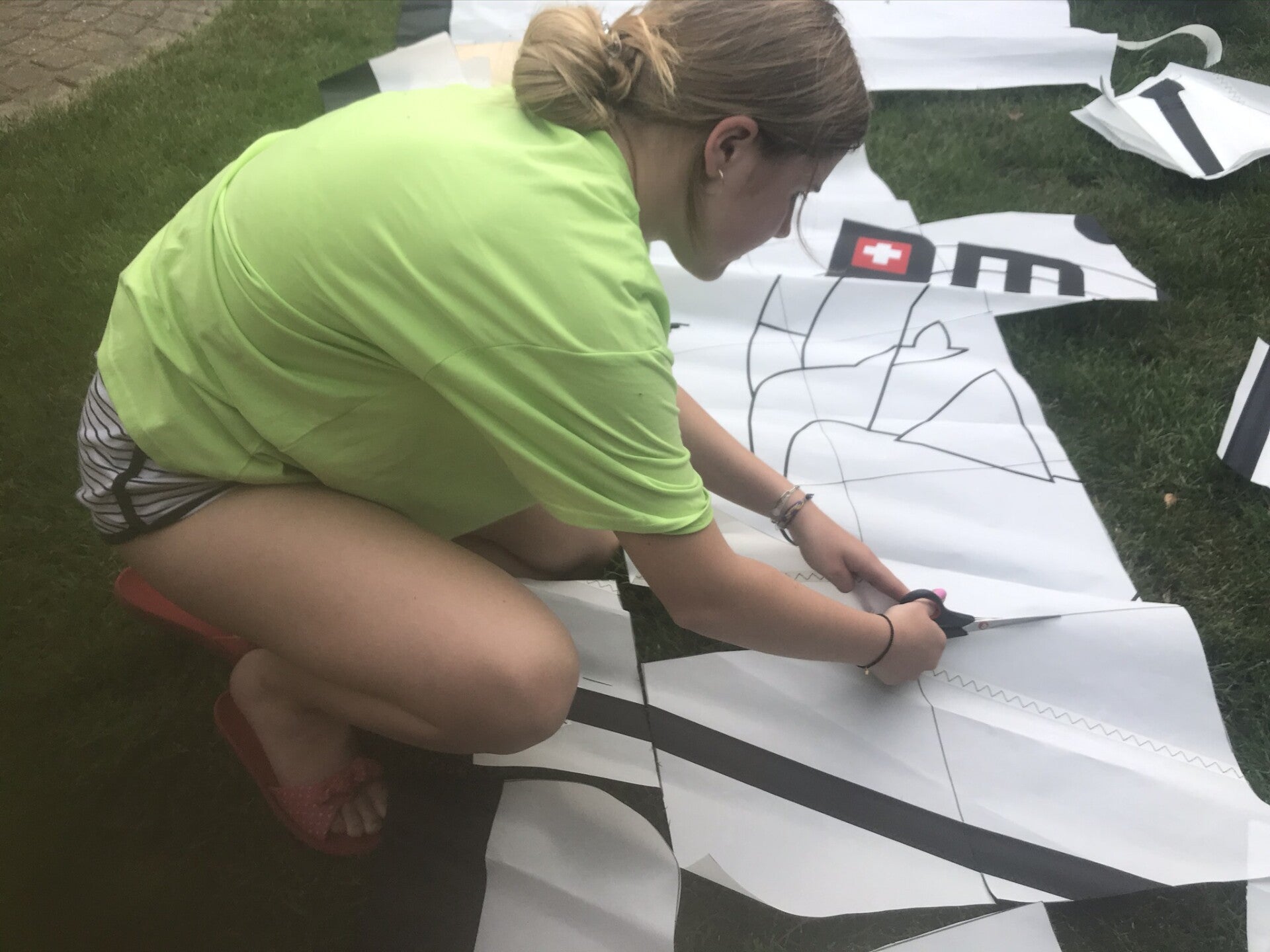hier zijn we de afmeting aan het bekijken zodat ik thuis de zeilen alvast kan knippen.